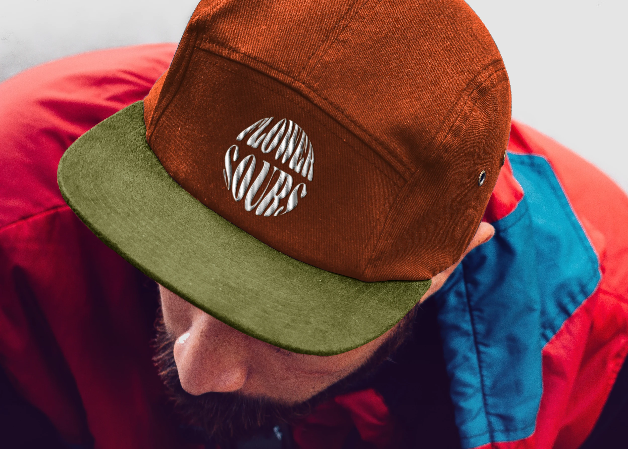 The Flower Sours logo is inspired by 60s psychedelic design, using warped, fluid typography to create a bold, playful, and memorable mark. The circular form and vibrant colors reflect the brand’s bright, expressive, and unconventional personality.
