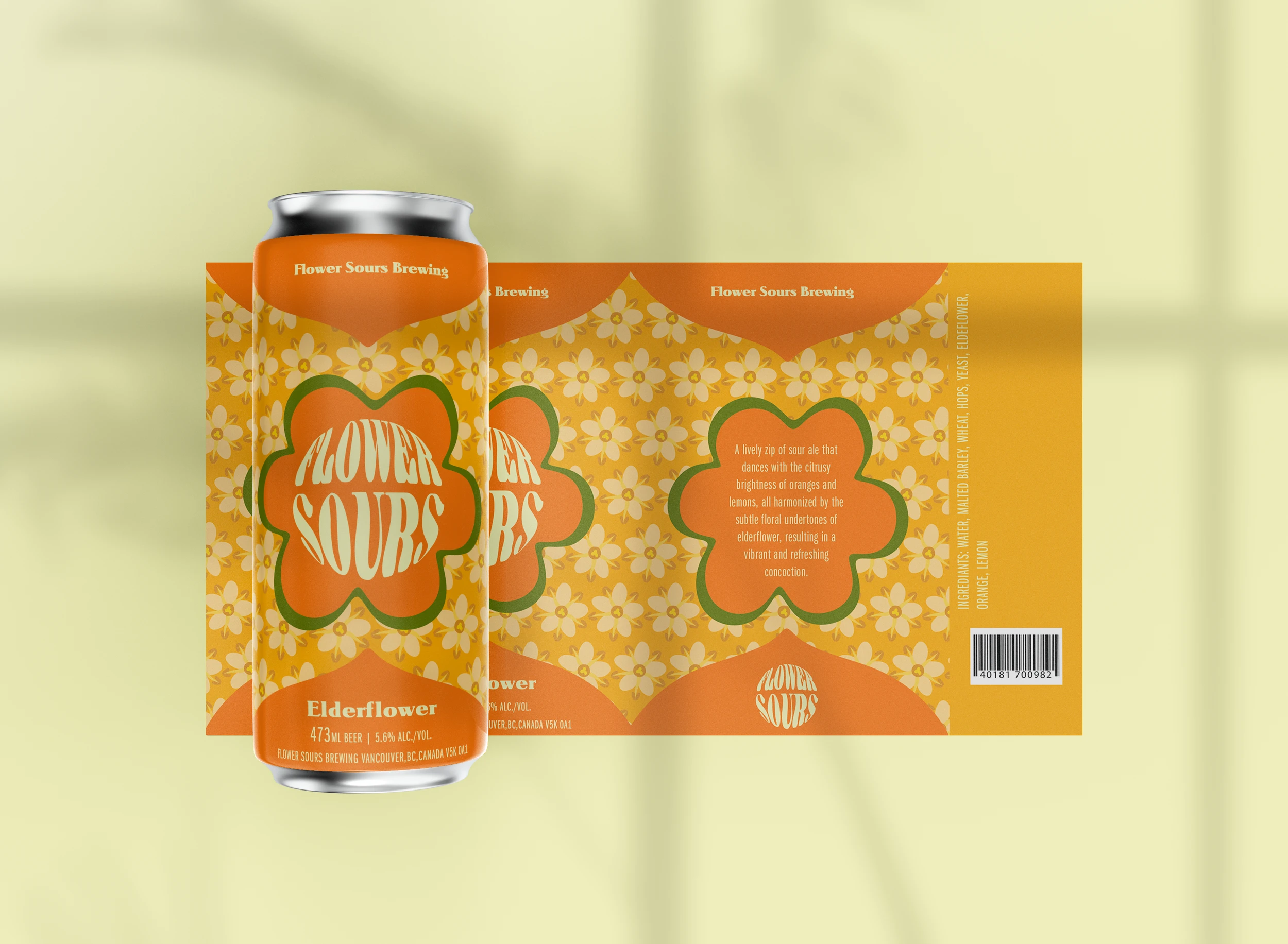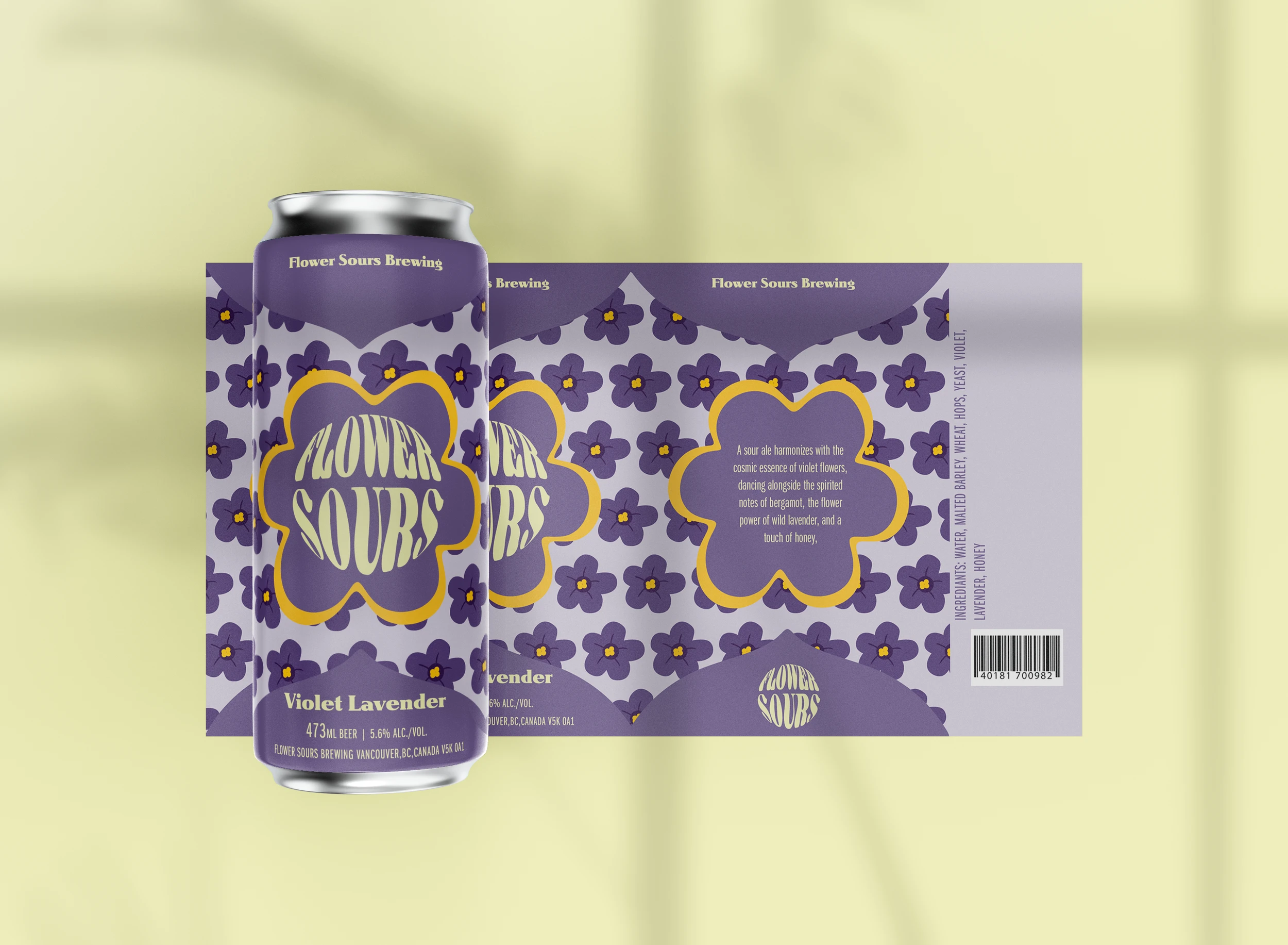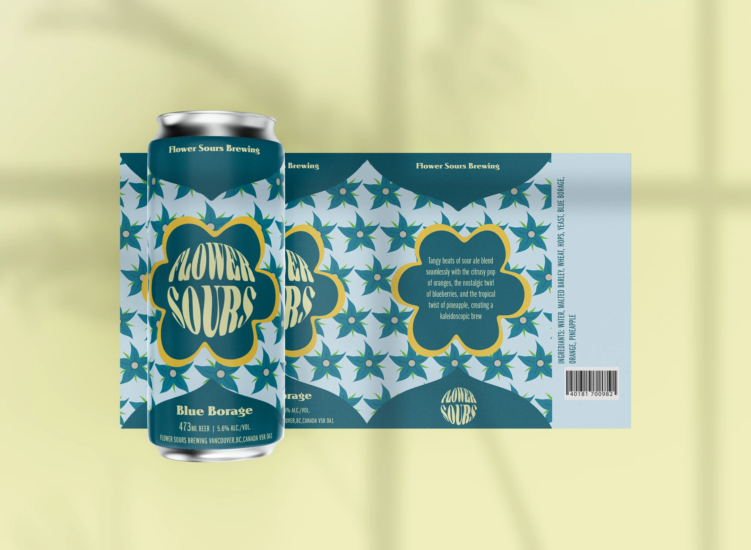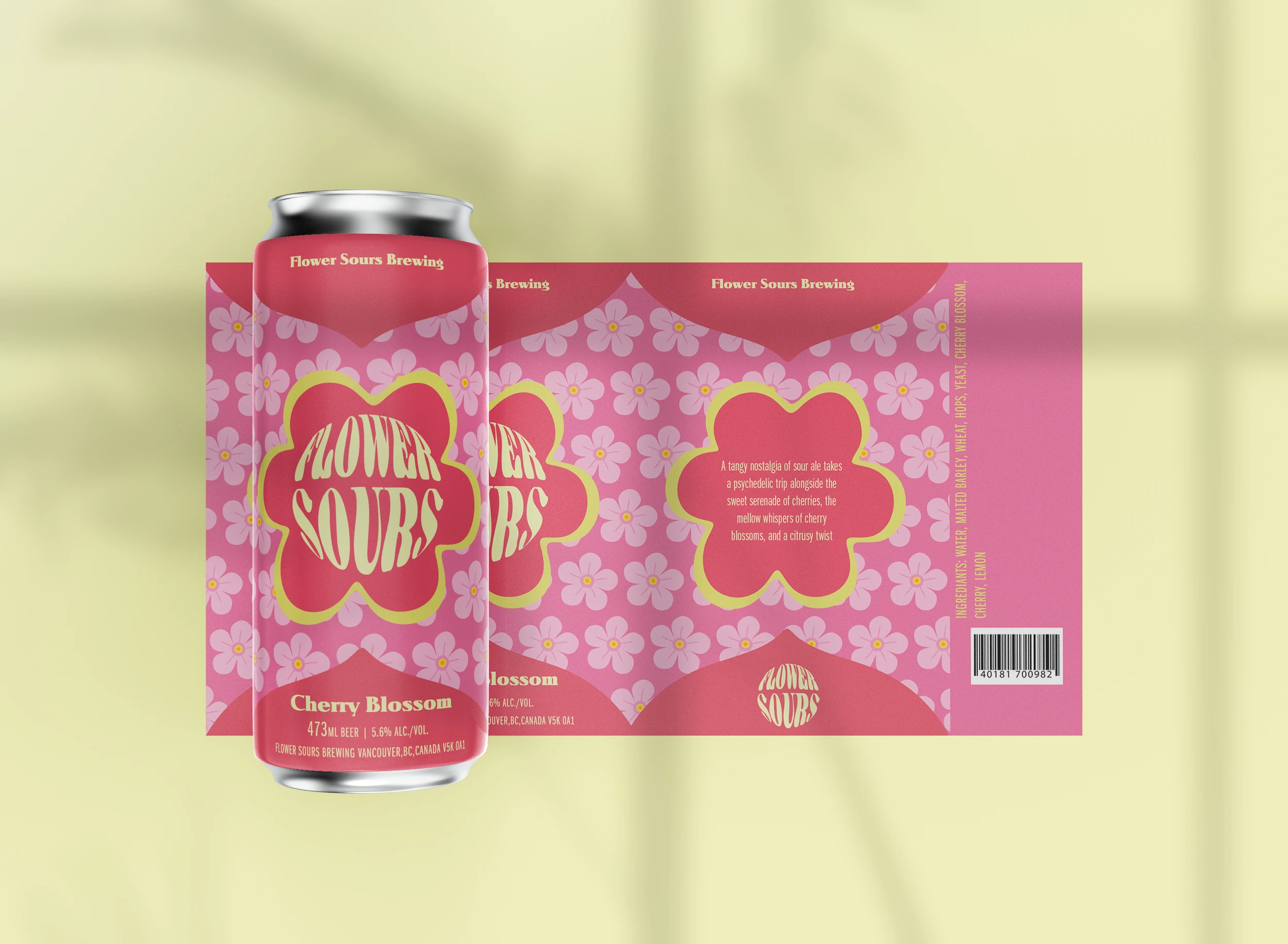 Flower Sours has four unique flavours deriving from natural florals such as “Cherry Blossom”, “ Elderflower”, “Blue Borage” and “Violet Lavender”. Each Flower Sours can design is adorned with a single focal colour that serves as the backdrop for the simple floral pattern. This deliberate choice not only pays homage to the aesthetics of the 1960s but also allows consumers to distinguish between the flavors at a glance visually.